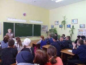 В рамках профориентационной работы с выпускниками 2017-2018 учебного года, 16.11.2017 прошла встреча с профконсультантомЦентра занятости населения Колмогоровой Галиной Иннокентьевной. С учащимися была проведена беседа и тестирование по самоопределению и выбору будущей профессии, о вакансиях на рынке труда. На встрече присутствовали не только учащиеся, но и их родители.
