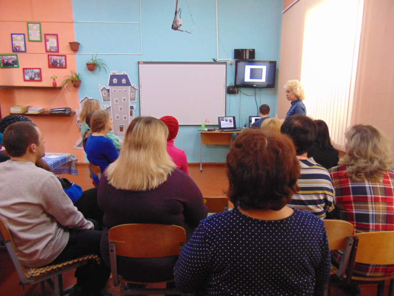 Особый интерес родителей вызвала презентация руководителя методического объединения учителей надомного обучения Старченковой Е.Е. Елена Евгеньевна представила фрагмент индивидуального занятияс ребенком с РАС.